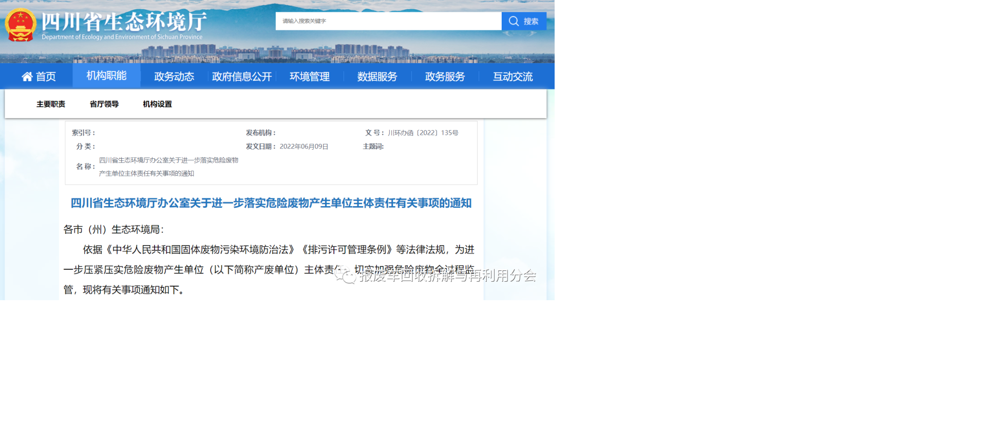 四川省生態(tài)環(huán)境廳辦公室關(guān)于進(jìn)一步落實(shí)危險(xiǎn)廢物產(chǎn)生單位主體責(zé)任有關(guān)事項(xiàng)的通知